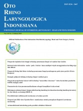Abstrak : Latar belakang: Gangguan pendengaran yang terjadi pada usia lanjut menyebabkan gangguankomunikasi dan berdampak pada kualitas hidup penderita. Tujuan: Mengetahui adanya hubungan ambangdengar dengan hasil penilaian hearing handicap dengan menggunakan hearing handicap inventory for theelderly-screening (HHIE-S) pada penderita presbikusis.Metode: Sebuahstudi cross sectional. Sampeladalah semua penderita yang didiagnosis presbikusis di poliklinik neurotologi THT RS Dr. Saiful AnwarMalang, dan memenuhi kriteria penelitian dengan teknik consecutive sampling mulai Maret–April 2010.Hasil: Pasien presbikusis yang terlibat dalam penelitian ini terdistribusi sebanyak 9 orang (37,5%) tanpahandicap, 10 orang (41,7%) handicap ringan–sedang, dan 5 orang (20,8%) termasuk handicap berat. Hasilpengukuran dari dua variabel utama, yaitu ambang dengar dan hearing handicap dianalisis menggunakankorelasi Spearman rank. Hasil perhitungan koefisien korelasi Spearman rank adalah 0,937 dengan p-value= 0,000. Kesimpulan: Terdapat hubungan yang signifikan antara ambang dengar dengan hasil penilaianhearing handicap pada penderita presbikusis.