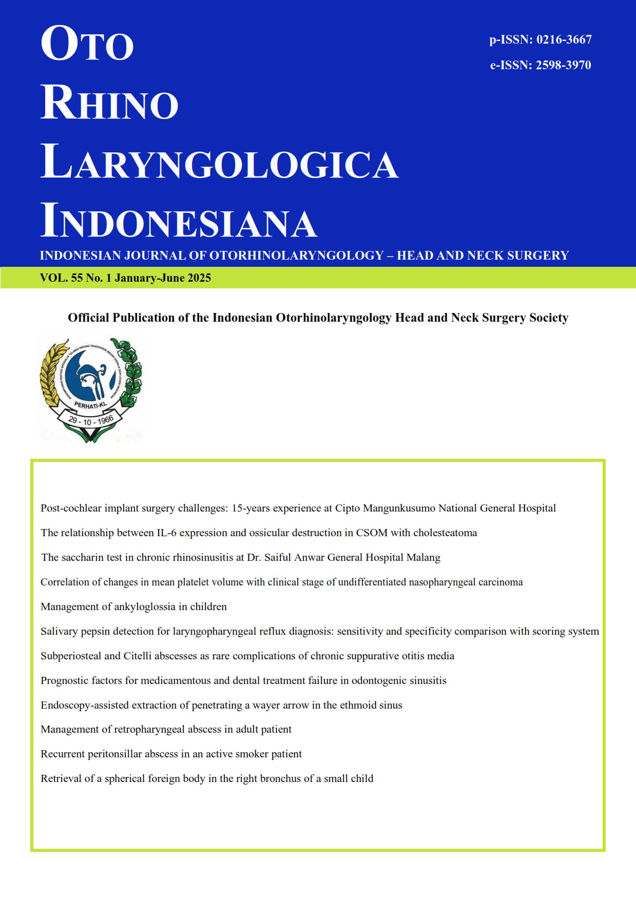 Background: Chronic suppurative otitis media (CSOM) is a disease that affects the middle ear, leading to perforation of the tympanic membrane. This condition involves chronic inflammation in the middle ear and mastoid cavity. A CT scan often reveals destruction to the ossicles and cholesteatoma. Purpose: To determine the relationship between increased IL-6 expression and ossicular destruction in CSOM patients with cholesteatoma. Method: This observational analytic study with a cross-sectional comparative design was conducted at the Anatomy Pathology Laboratory of Prof. Ngoerah General Hospital, Denpasar. The study used cholesteatoma tissue paraffin blocks from patients with the dangerous type of CSOM who had undergone tympanomastoidectomy from January 2022 to December 2023. Sampling was carried out through consecutive sampling, which included all cholesteatoma tissue paraffin blocks from patients with the dangerous type of CSOM that met the inclusion criteria, amounting to 17 blocks. Result: This study found a p-value >0.05, indicating no association in the bivariate analysis between the percentage, intensity, and overall score of IL-6 pathology results and ossicular destruction due to cholesteatoma, in CSOM patients. Conclusion: This study concluded that there was no significant relationship between IL-6 expression and hearing bone destruction caused by cholesteatoma in CSOM patients.